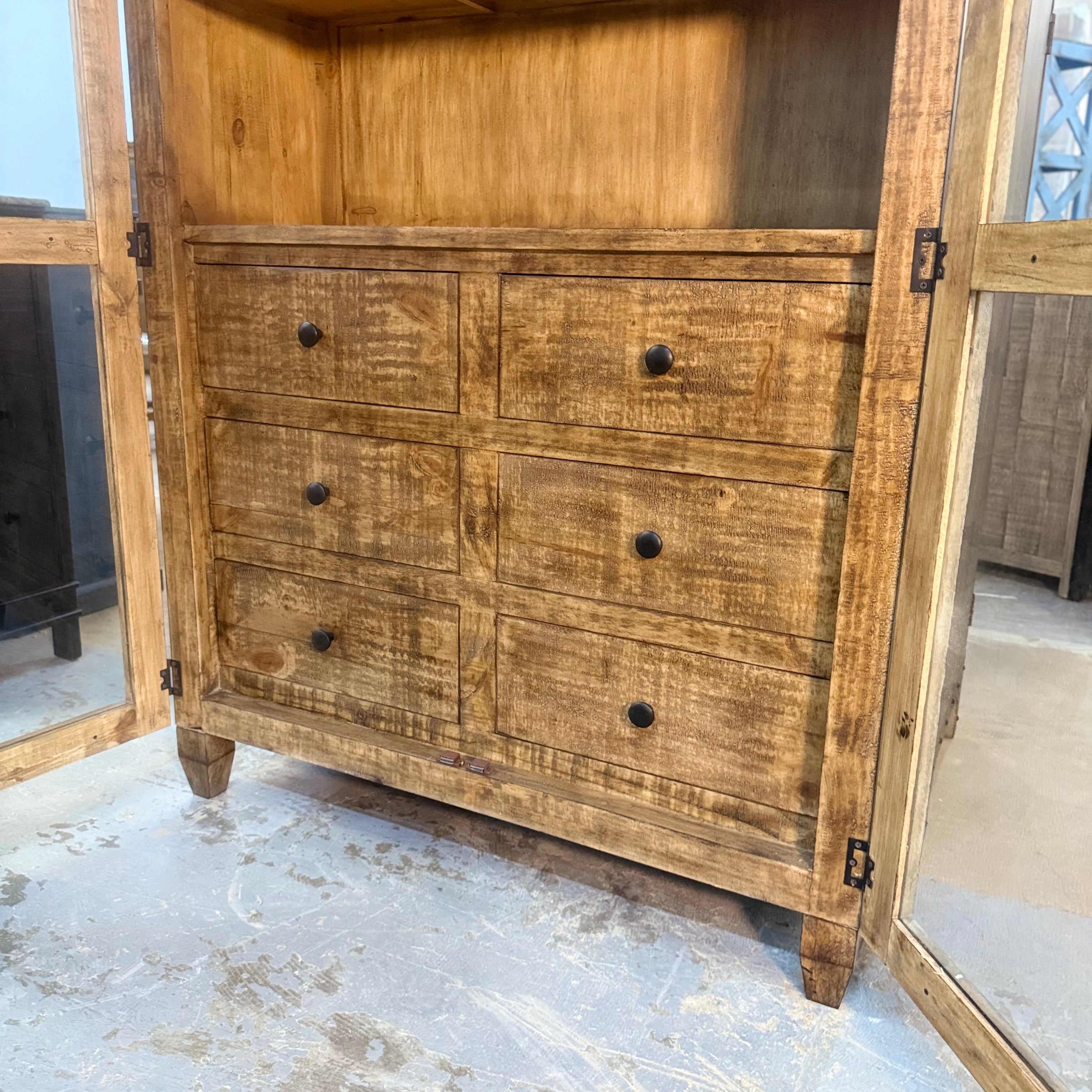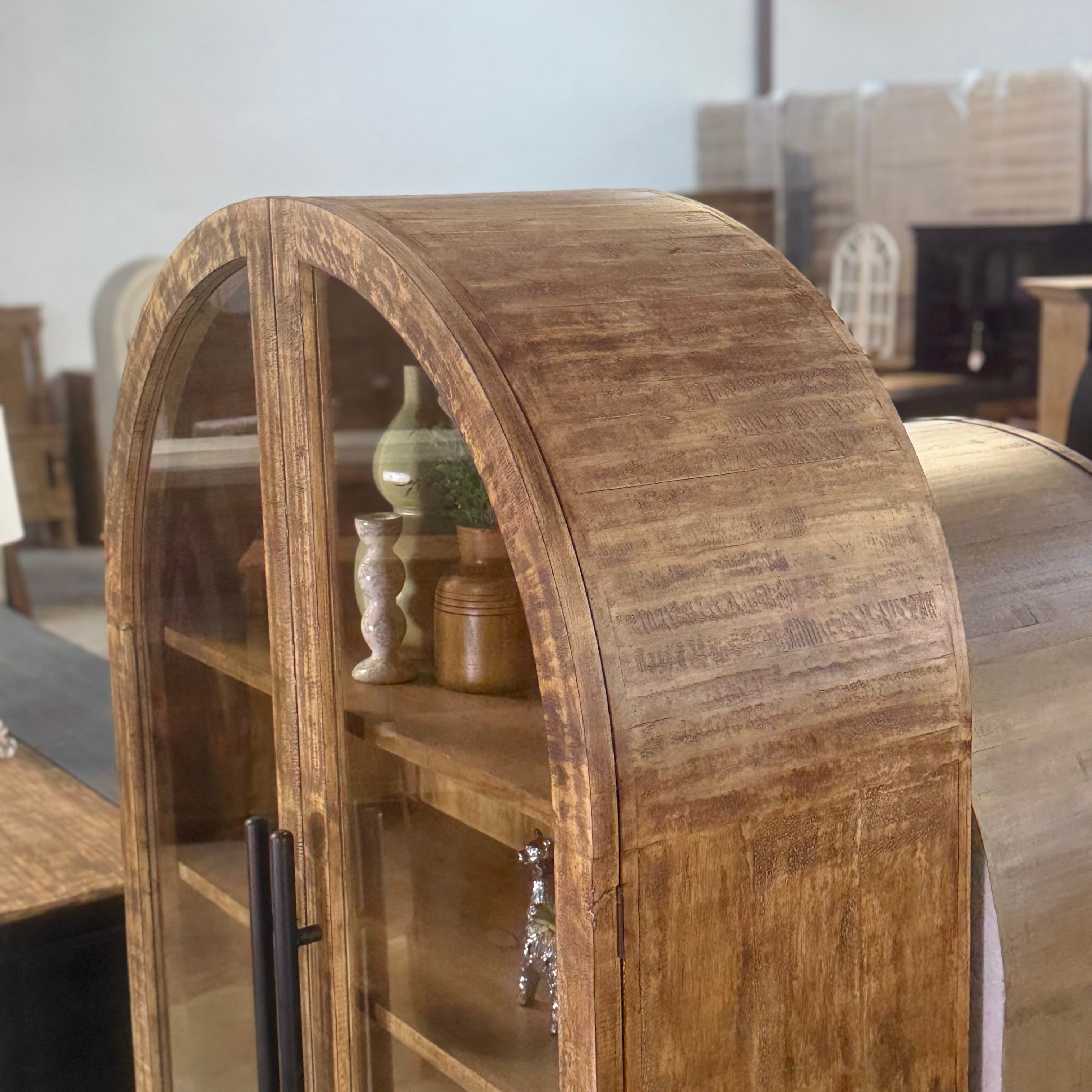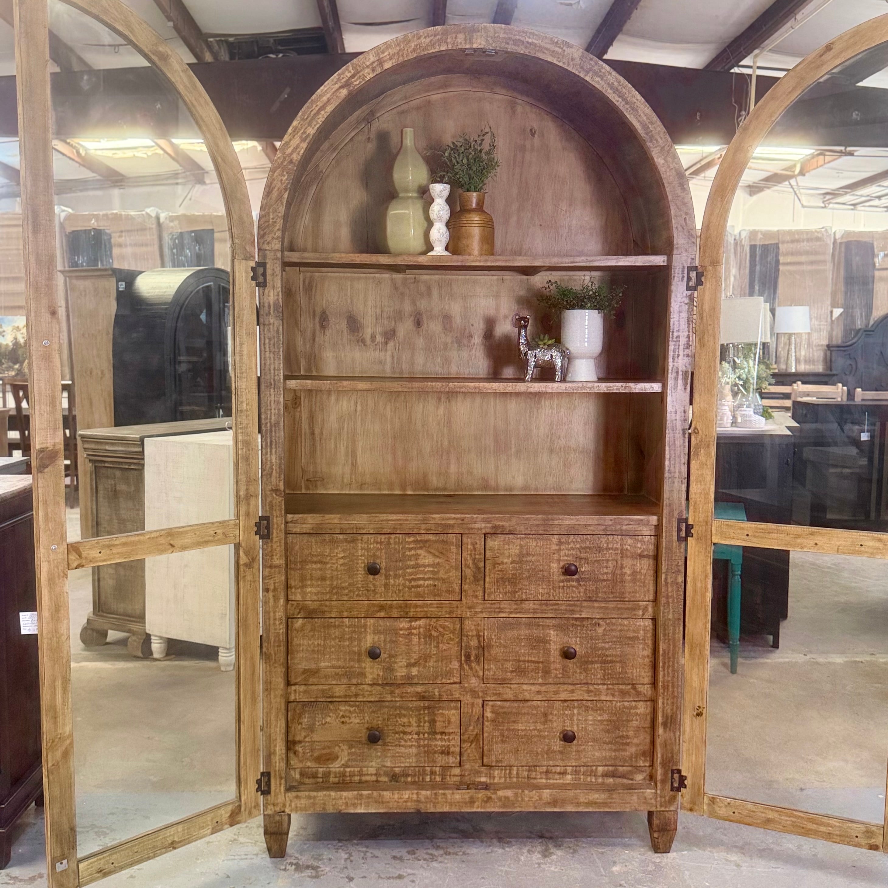 5090 - arched top cabinet with drawers pecan