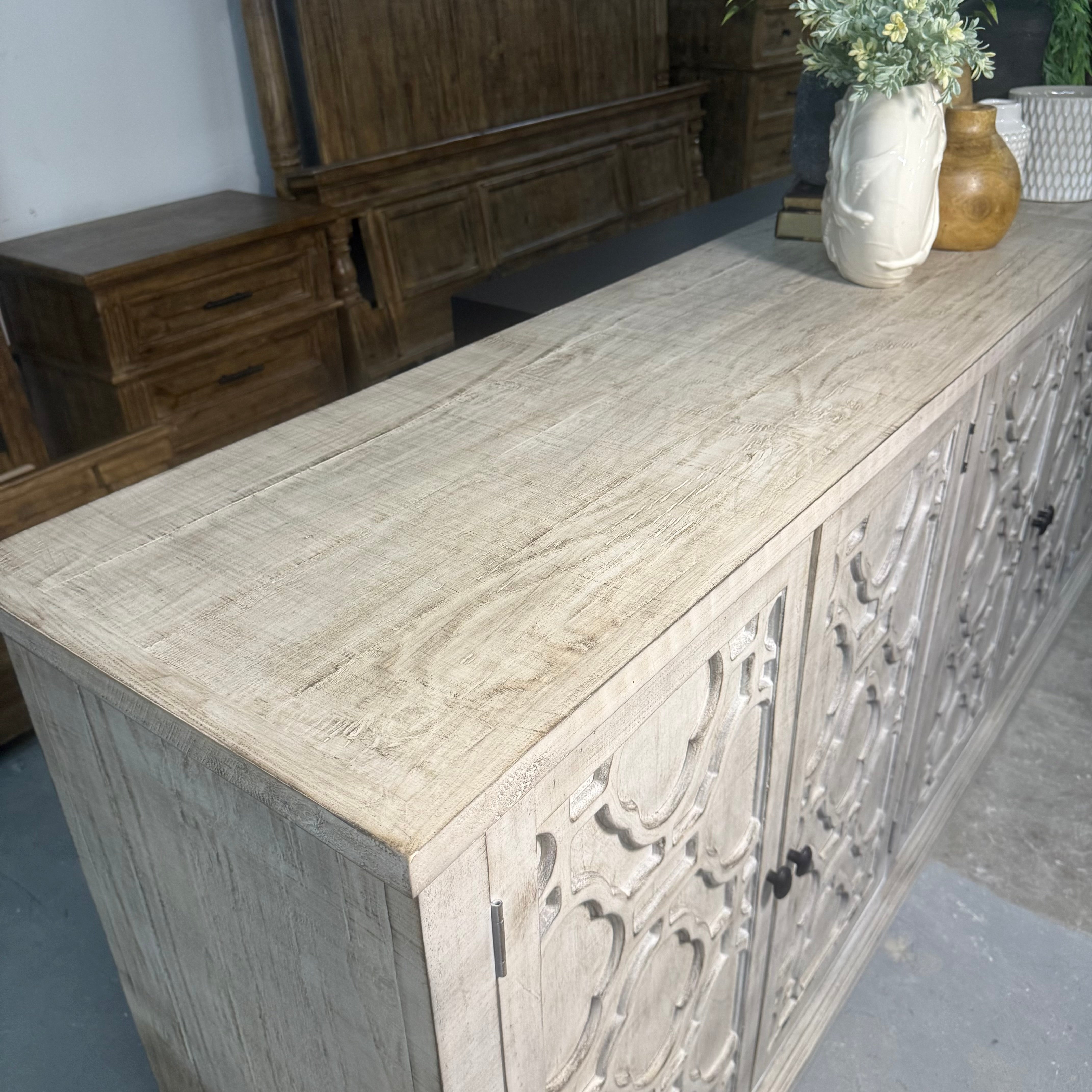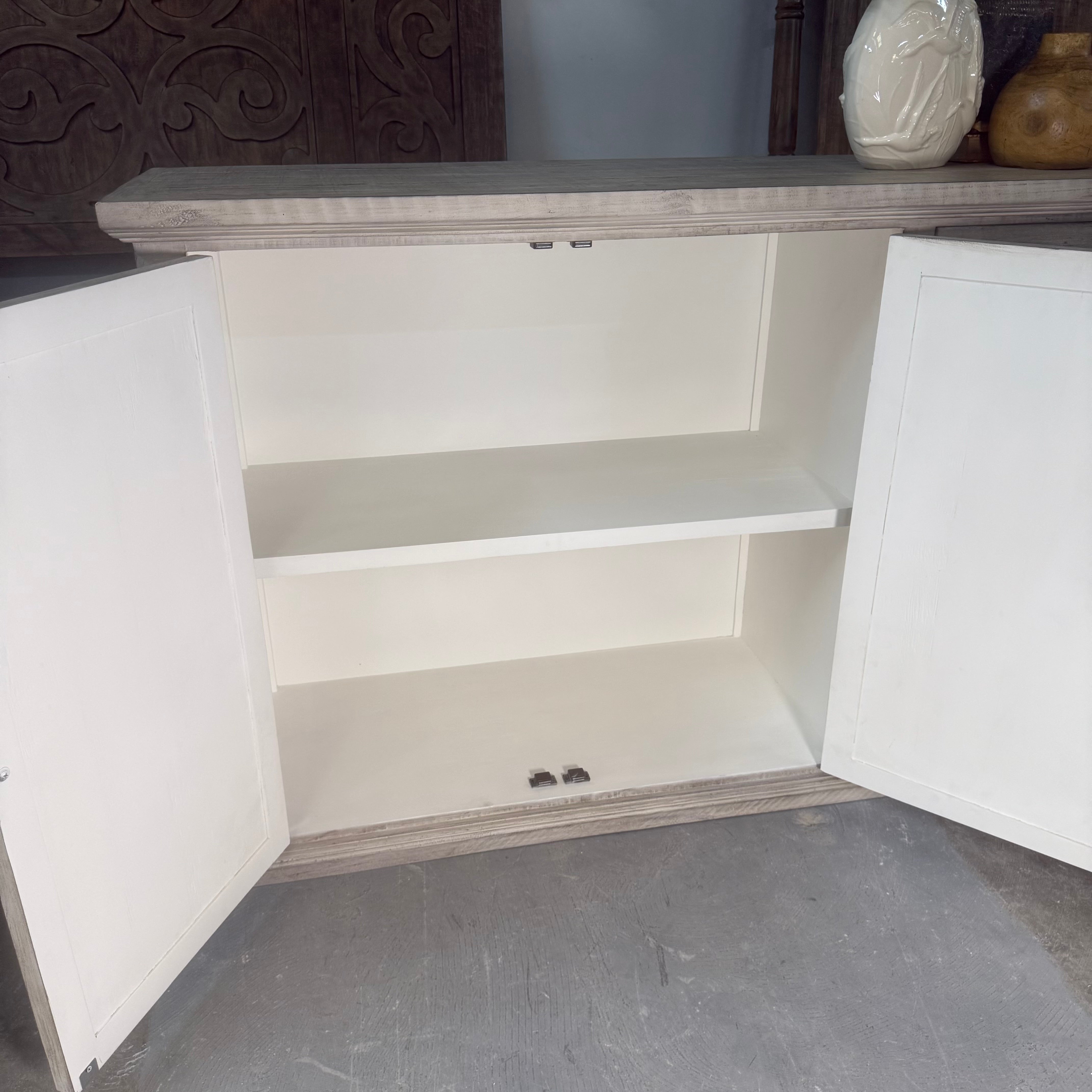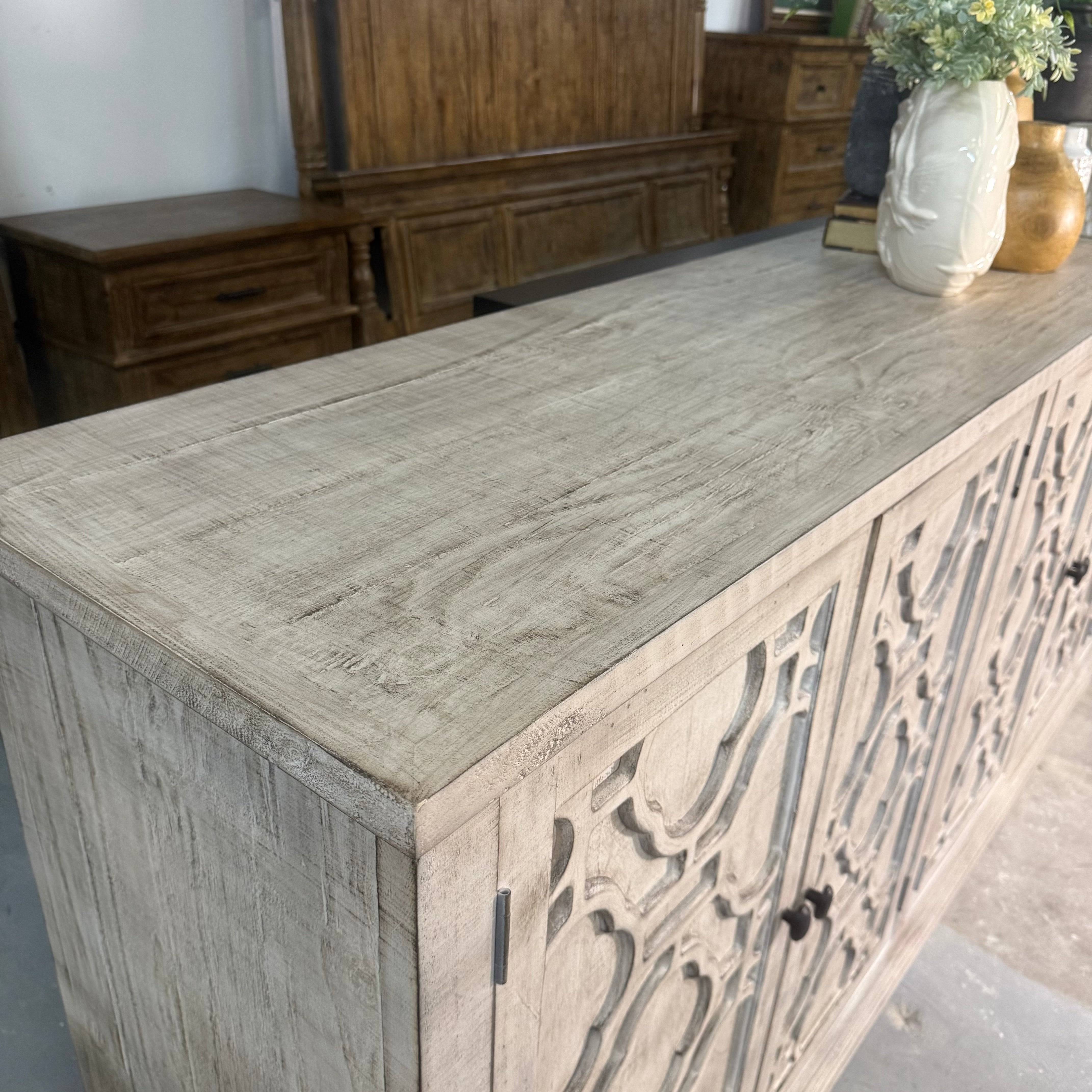 5093 - 6 door raised lattice console gray sand