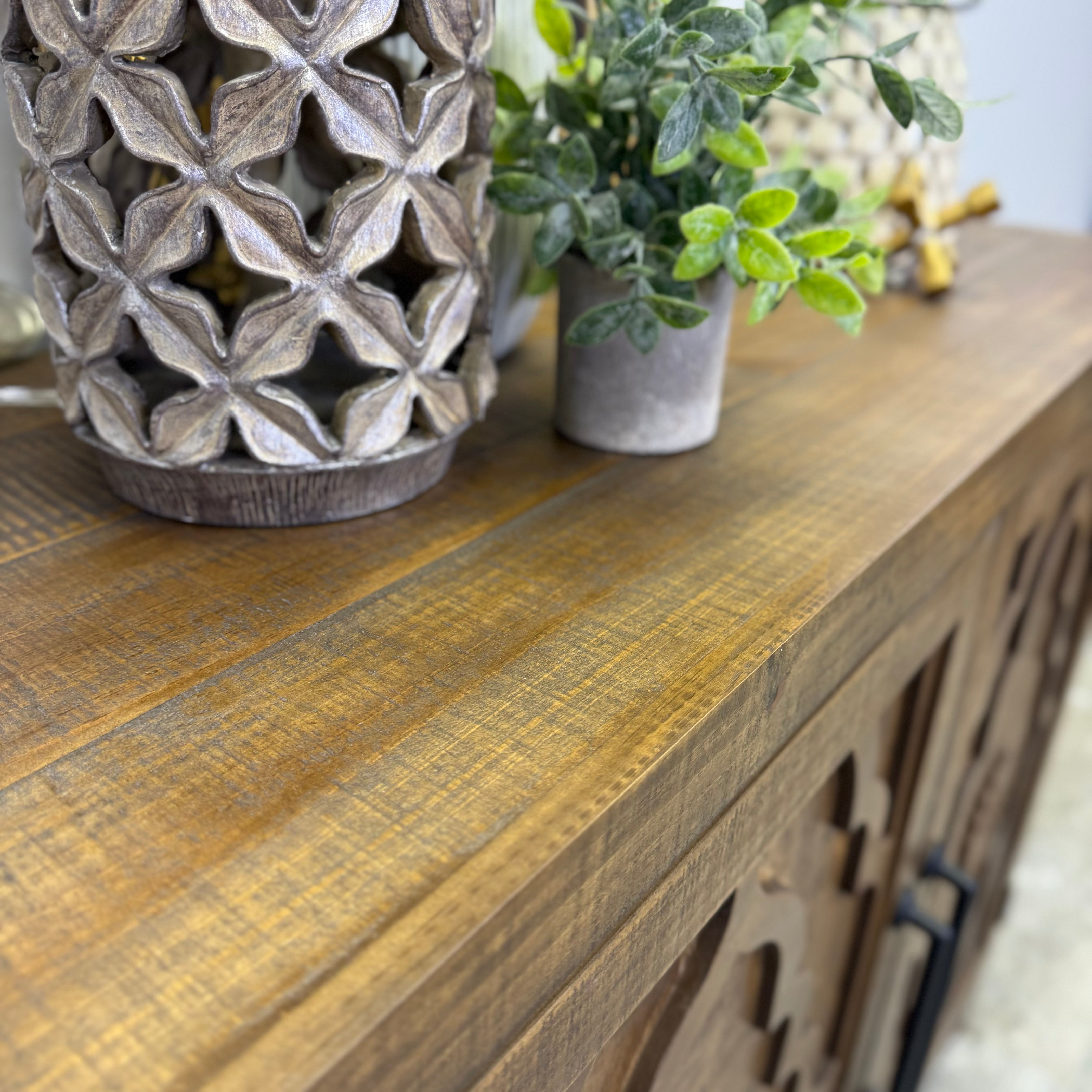 Finished in Rum, this solid wood console brings a rich, honeyed warmth that feels collected, layered, and timeless without drifting into heavy or traditional. The finish highlights the depth of the wood while keeping the overall look relaxed and grounded.