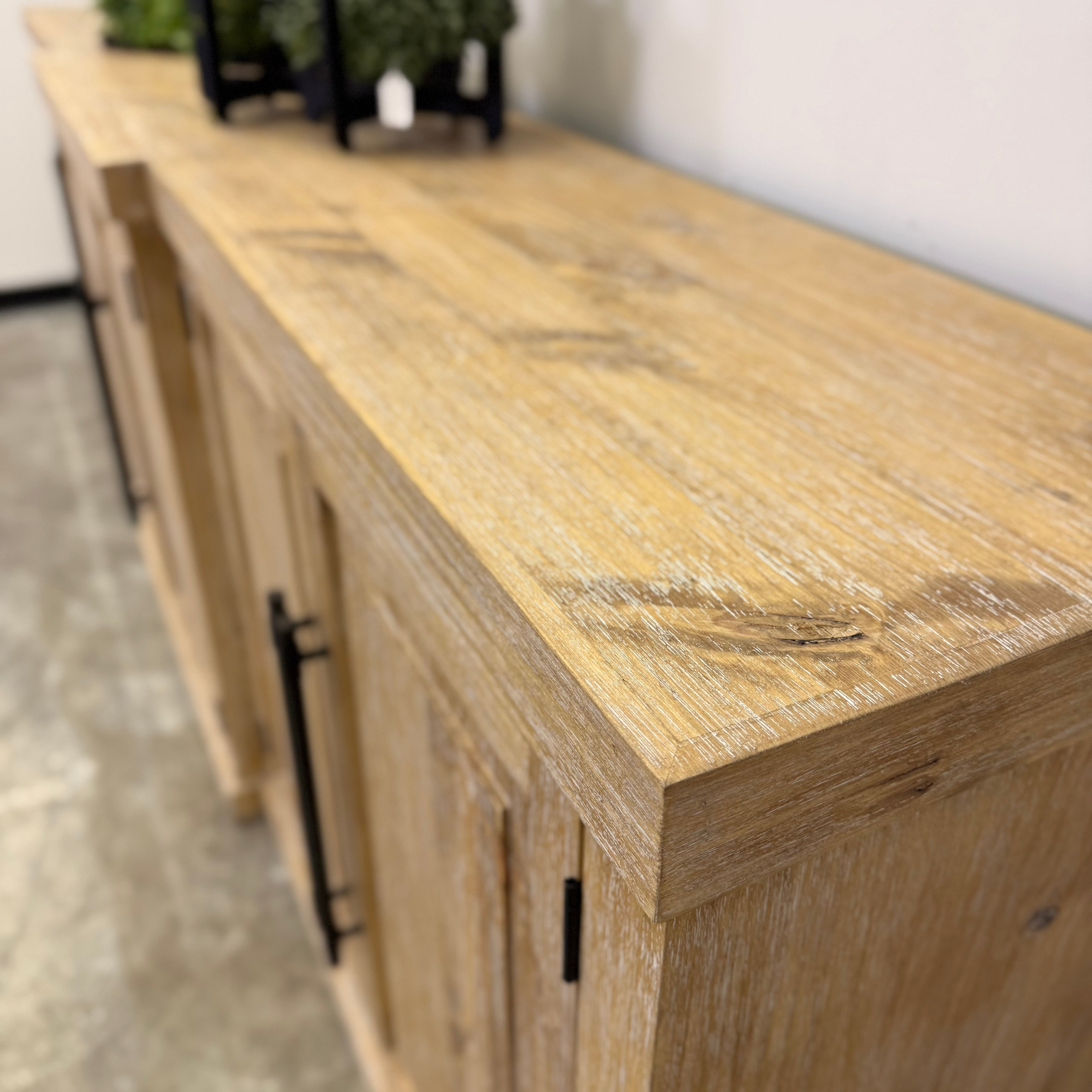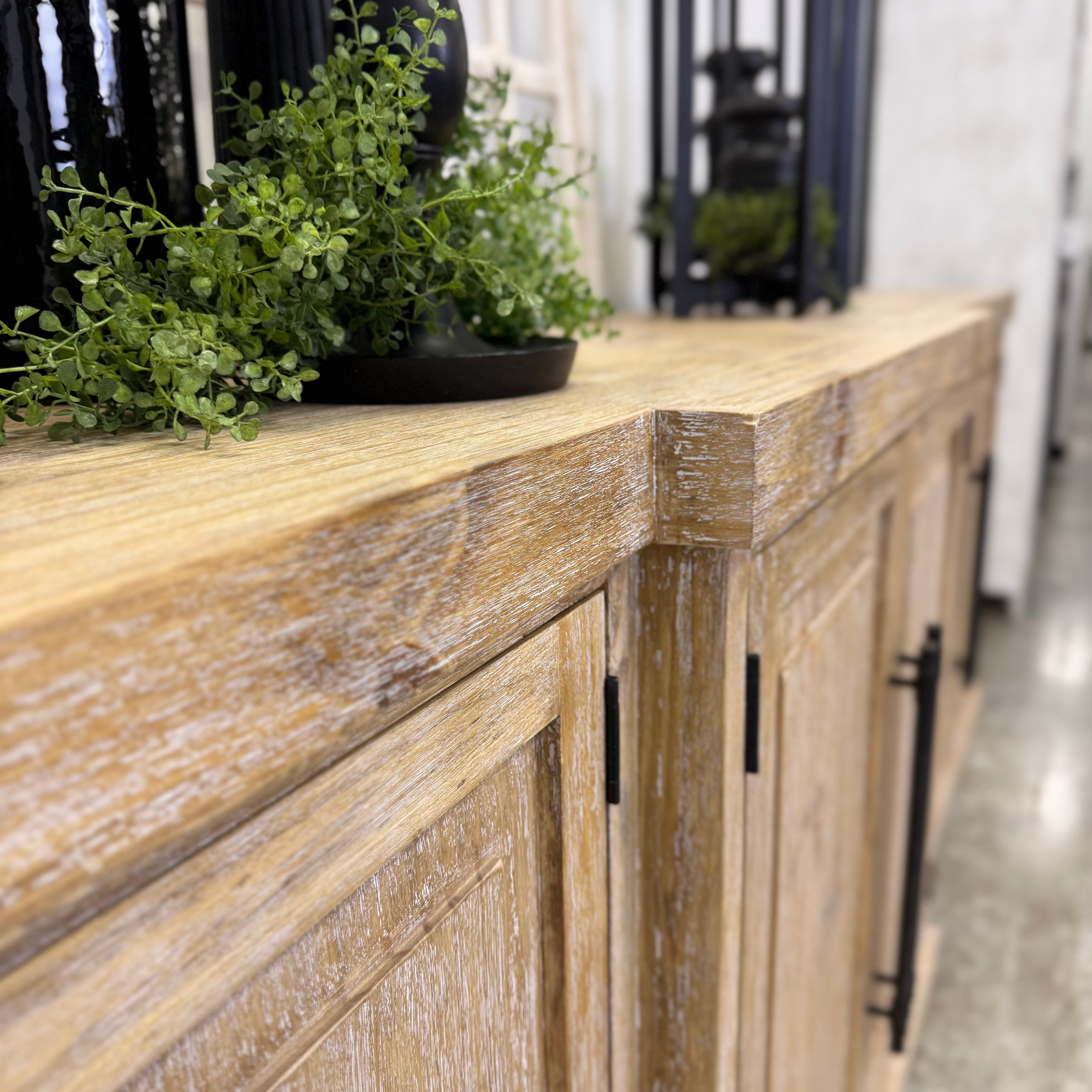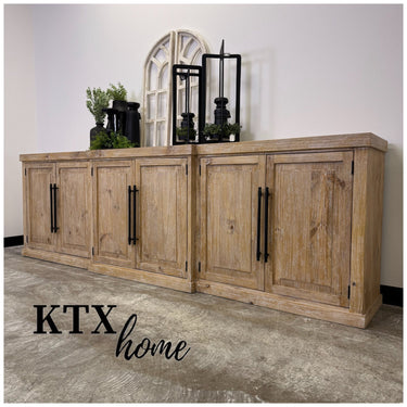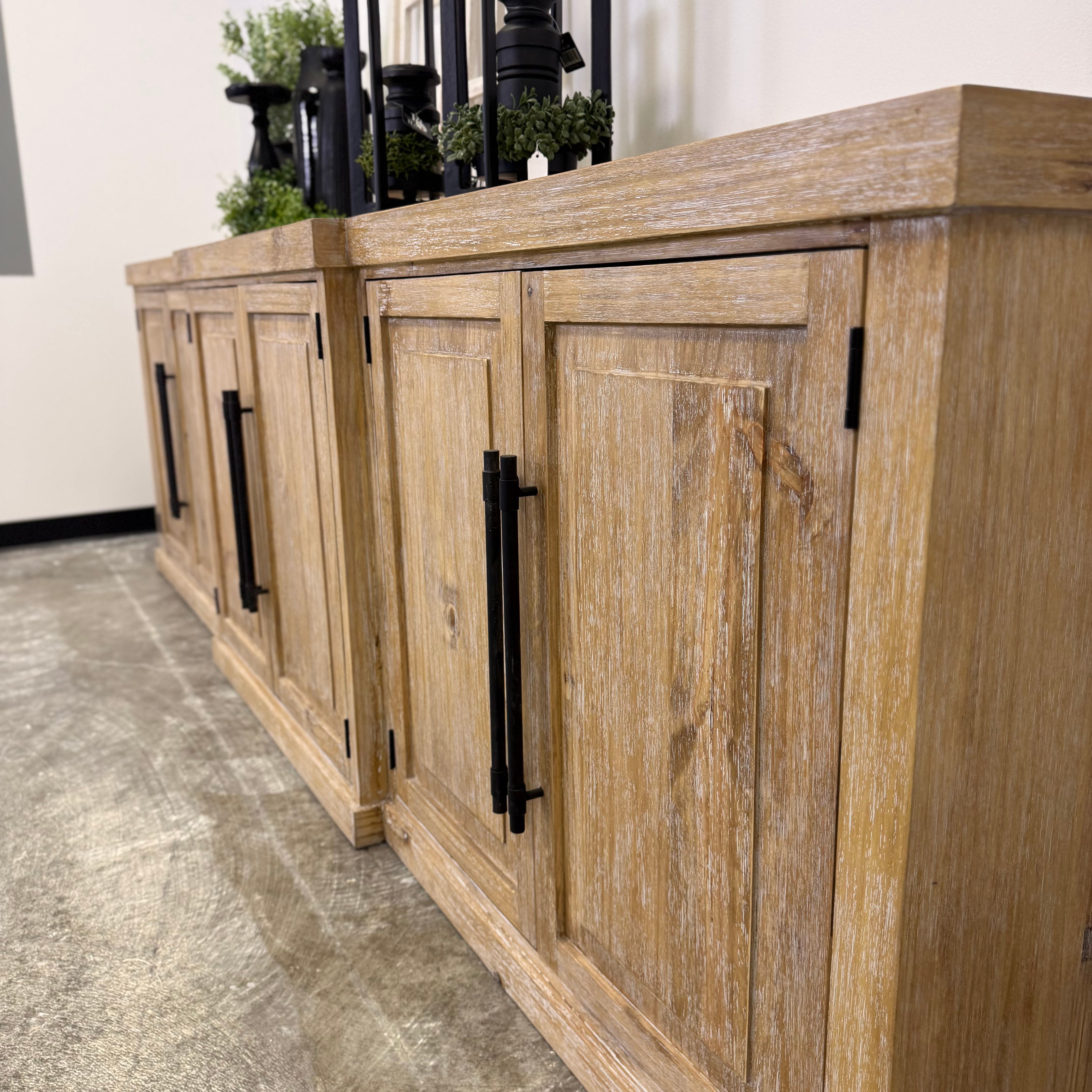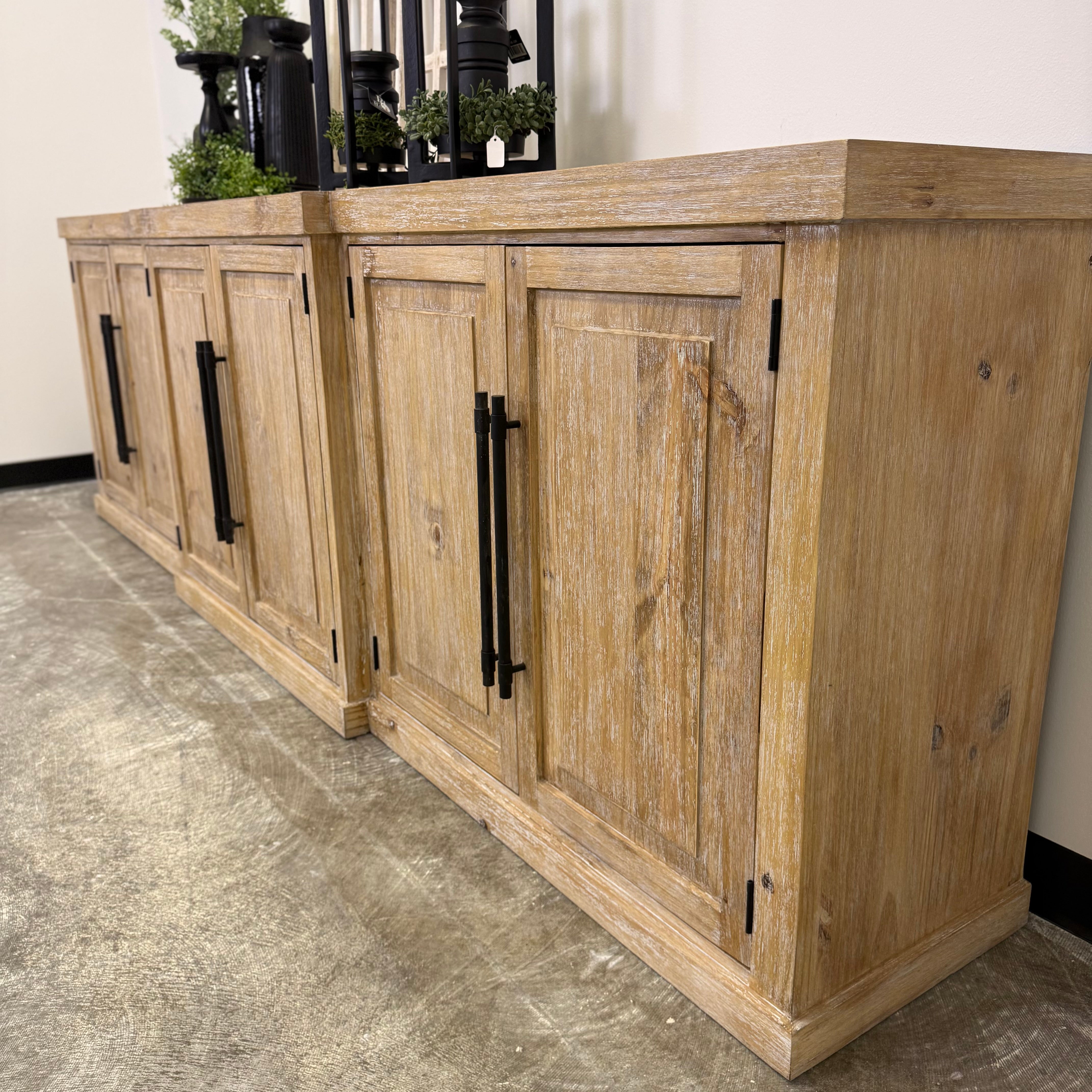 Long lines. Solid wood. Those matte black pulls anchoring the whole thing like punctuation.